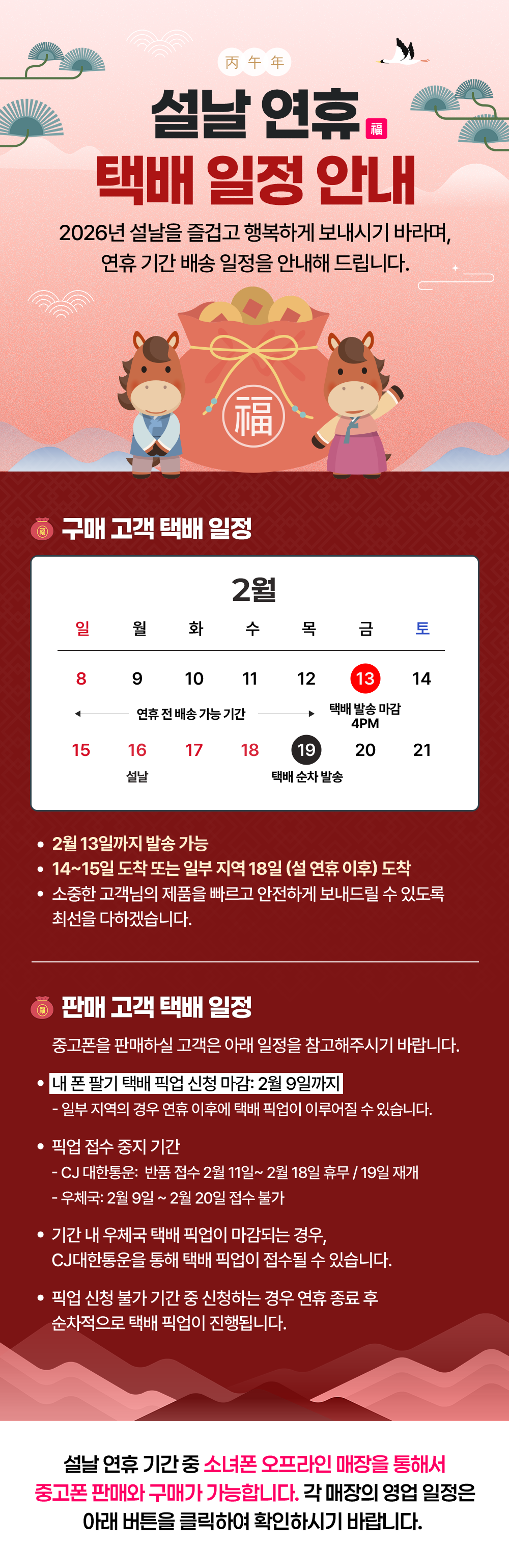 2026 설날 연휴 기간 전국 매장 휴무안내